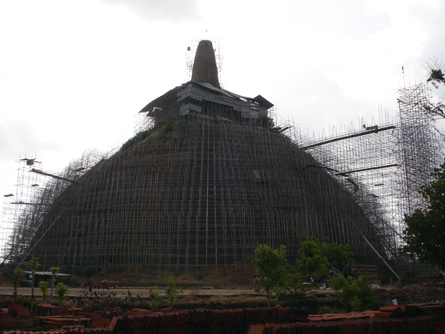 dagoba’s gezien. Eentje stond er bijna volledig in de steigers. De andere was wel af, maar niet voorzien van een mooi wit laagje verf. Het gaf ons wel een mooi beeld van hoe deze grote gebouwen gemaakt zijn. Ook reden we langs enkele ‘tanks’. Dit zijn een soort zwembaden voor opvang van het regenwater. In vroeger tijden kon men hier het water vandaan halen tijdens de droge perioden.