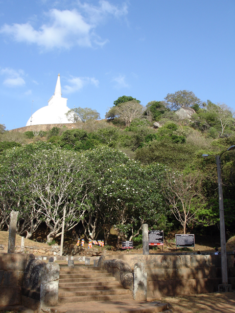 Een paar kilometers ten westen van Anuradhapura ligt Mihintale, ook een heilige plaats voor de Singalezen. Er wordt gezegd dat op deze tempelberg de koning zich tot het boeddhisme liet bekeren. Wij zijn hier via een trap omhoog gelopen. Bovenaan hadden we een schitterend uitzicht over de omgeving. Het hele land leek redelijk vlak te zijn, met hier en daar een berg. In de verte konden we ook nog de dagoba’s van Anuradhapura zien liggen. Hierna zijn we doorgereden naar Polonnaruwa.