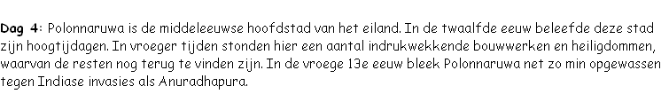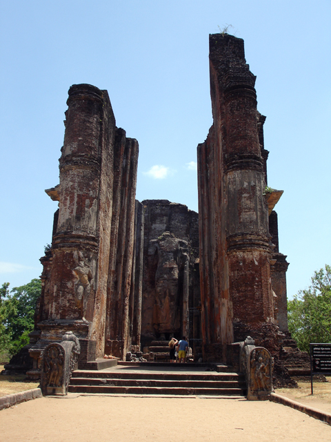 voornamelijk de funderingen nog terug te vinden en enkele wanden. We hebben onder andere het koninklijk paleis bezocht, de Vatadage: een dagoba met 4 zittende Boeddha’s, de Thuparama: de enige boeddhistische tempel met nog een dak en de Gal Viharaya: een rots waar drie varianten van Boeddha zijn uitgehakt, de zittende, staande en liggende Boeddha.
