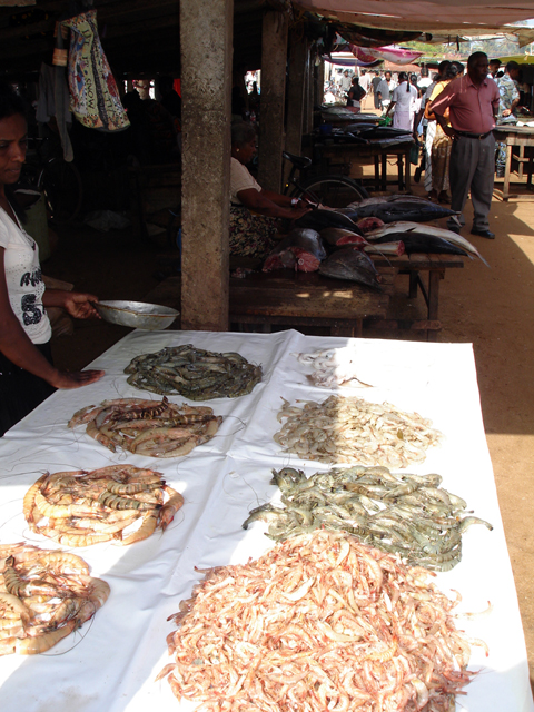 Vanaf het vliegveld reden we per minibus naar ons hotel in Negombo. Dit plaatsje ligt vlakbij het vliegveld en ongeveer 30 kilometer boven Colombo. Hier werden we verwelkomd met een drankje, waarna we onze spullen op de kamer konden plaatsen. Na een ontbijt waren we weer even fit genoeg om wat van het dorp te zien.