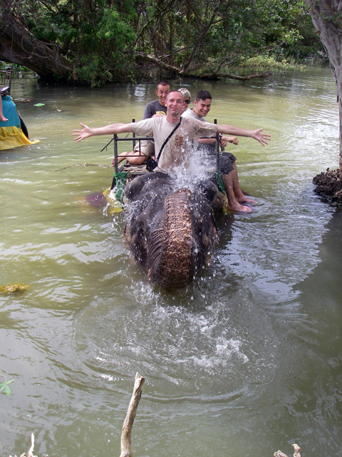 We zijn doorgereden naar Harabama. Hier zijn we een olifantenrit gaan maken. Eerst werden we verdeeld over twee olifanten, waarbij we in een bakje op zijn rug moesten zitten. Toen we van de hoofdweg af waren, mocht ik ook in de nek van de olifant zitten. De olifant liep uiteindelijk ook door het