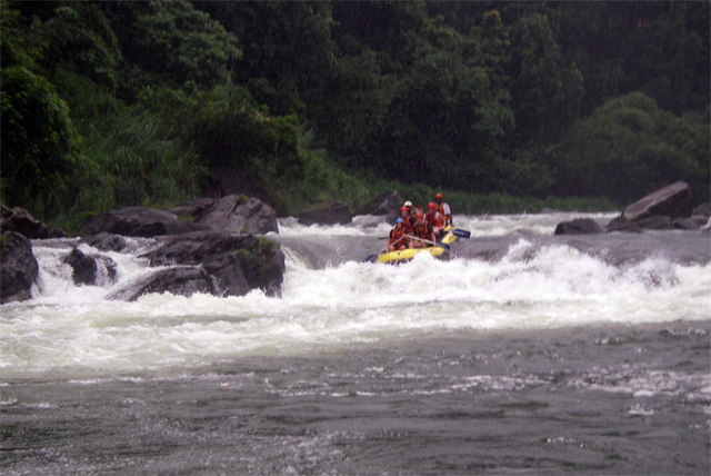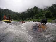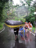 Na de lunch zijn we gaan raften. Dan maakt regen ook niet uit, aangezien we toch al nat zouden worden. Na een stuk stroomopwaarts gereden te hebben, konden we in de rafts plaatsnemen. Via zeven stroomversnellingen zouden we terug naar ons vakantieadres varen.