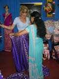 hoe men de edelstenen op groef. Daarna mochten we in de winkel kijken voor iets moois. Er naast zat ook een zijdewinkel. Hier kregen we een korte uitleg over hoe zijde gemaakt werd en ook daarna mochten we de winkel bekijken. Voor de dames onder ons was het wel leuk door een sari (traditioneel kledingstuk) uit te proberen. En het stond ze ook zeker goed.