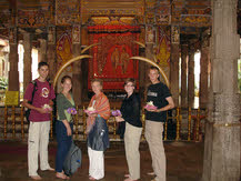 verlichte. De linkerbovenhoektand werd na de crematie uit de as van Boeddha gevist. De bevolking gelooft dat de bezitter van de tand de rechtmatige heerser van Sri Lanka is. Via een scherpe controlepost zijn we de tempel binnen gegaan. Hier waren we op tijd om de ochtendceremonie te zien van de monniken. Drie maal per dag is er een ceremonie waarbij de tand (en Boeddha) wordt geëerd. Ook de vele bezoekers kunnen dan bidden en een offerande van bloemen geven. In een naastgelegen ruimte konden we via diverse schilderingen de geschiedenis van Boeddha bekijken.