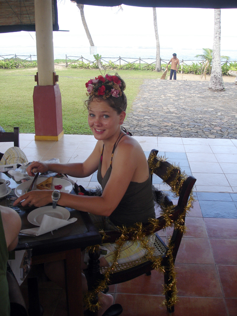 oud tijdschrift. Dit gaf het geheel toch een feestelijk tintje. We hadden een bloemen-kroontje en een sari gekocht als verjaardagscadeau.