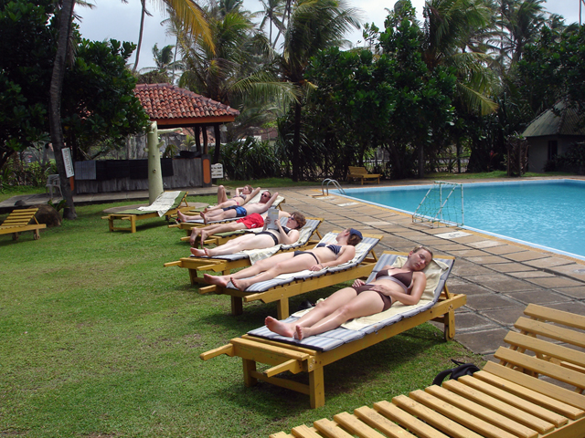 Langs de kust zijn we verder gereden naar onze volgende stopplaats, een heerlijk zandstrand vlak achter ons hotel in Ahangama. Na aankomst hebben we bij de invallende avond eerste een verfrissende duik genomen in de zee, waarna