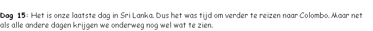 We zijn daarna doorgereden naar Colombo. Hier hebben we eerst de laatste souvenirs gekocht. Daarna zijn we naar het hotel gegaan. Om half twee ’s ochtends zouden we naar