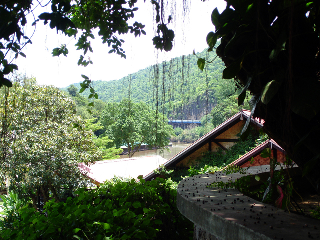 Na ongeveer 3,5 uur rijden kwamen we aan bij station: River Kwai Bridge. Opeens werd het ook en stuk drukker in de trein met veel toeristen. Want net na het station begon de beroemde brug over de rivier Kwai. De trein reed hier dan ook rustig overheen, waarbij