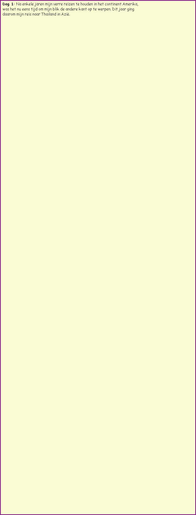 hotel. ’s Avonds zijn we weer naar een ander restaurant geweest op Khaosan Road. De straat bleek nu in een bijzondere sfeer omgetoverd te zijn. Vele kraampjes, winkeltjes, massagesalons, barretjes en straatverkopers, samen met neonverlichting en vele toeristen maakten dit een sfeervolle omgeving. Na het eten en een heerlijke oliemassage zijn we uitgeput naar bed gegaan.