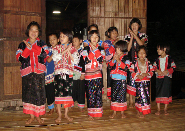 Na het eten kwamen de kinderen in traditionele klederdracht langs. Ze kwamen voor ons liedjes zingen met eenvoudige dansjes erbij. Het zag er allemaal heel leuk uit