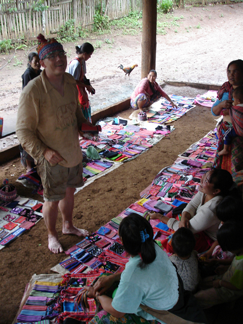 Terwijl onze gids aan het avondeten begon, konden wij even lekker relaxen bij ons berghutje. Ondertussen was de lokale bevolking hun matjes met handelswaar aan het uitstallen. En ze gingen ook pas weg als we eerst even de kleedjes, kettingen en tasjes hadden bekeken.