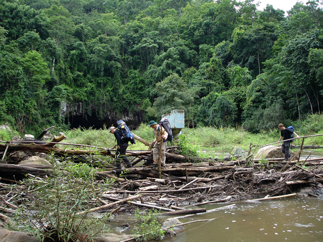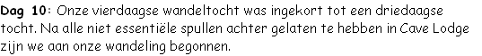 Dag 9: Deze dag zou de eerste zijn van de vierdaagse wandeltocht. De uiteindelijke invulling bleek toch wat anders. We begonnen met een kort bustochtje naar Ban Tham Lod, een klein dorpje boven Soppong. Hier kwamen we aan bij Cave Lodge, een berggasthuis met eenvoudige accommodatie in een natuurrijke omgeving.