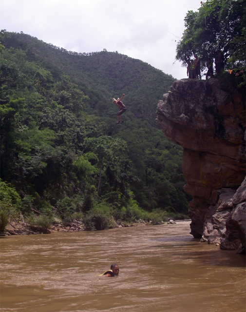 Vlakbij de lunchplaats was er ook een mogelijkheid om van een klif te springen. Vanaf een hoogte van 8 meter sprongen we de rivier in, waarna we direct meegenomen werden door de stroming.