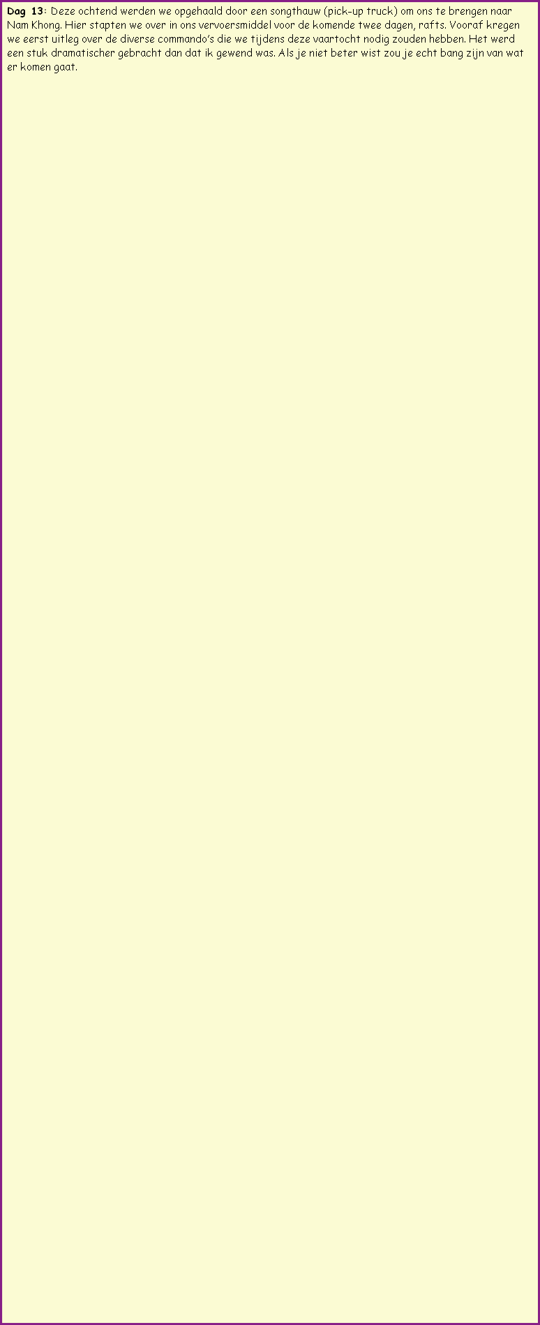 Dag 15: Vooraf was ons al meegedeeld dat de vlucht van Mae Hong Son naar Chiang Mai niet door zou gaan. Met een tweetal minibusjes zouden we deze route gaan afleggen, een tocht van ongeveer 6 uurtjes.