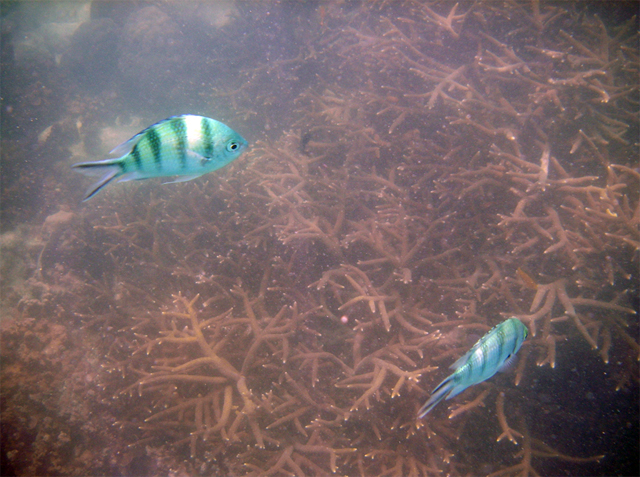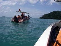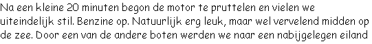 aankomst op het strand werden we opgeschrikt door gegil. Het bleek dat een klein meisje en haar moeder in aanraking waren gekomen met een kwal. Vooral bij het kleine meisje was de allergische reactie erg hevig. Koelen met zeewater en snelgemaakte kruidenmixjes werd geprobeerd de pijn te verzachten tot een speedboot gereed was om ze zo snel mogelijk naar het ziekenhuis te vervoeren. De snorkelende mensen hier waren daarna ook snel vertrokken.