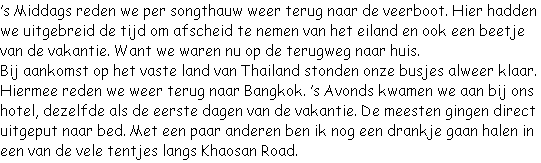 mooi tijd om een laatste rondje te lopen over Khaosan Road. Daarna reden we weer terug naar het vliegveld. Hier hadden we tijd genoeg om bij ons vliegtuig te komen.